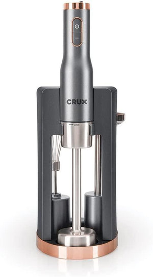 - Modern design looks great in your home - at Crux, our goal is to develop products to make your life easier in the kitchen. Designed and engineered in new York city with an all stainless steel build for maximum durability. The sleek silver and copper colours fit right in with your kitchen for a high Class, contemporary look
