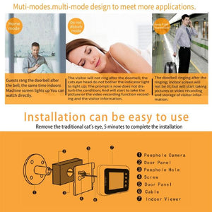 Danmini Q8 2.4 inch Color Screen 1.0MP Security Camera No Disturb Peephole Viewer, Support TF Card (32GB Max) / Night Vision / PIR Motion Detection (Gold)