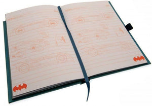 - 240 Ruled Pages With Corner Logo Detail, Batmobile Tech Design, Elastic Band Closer And Pen Holder