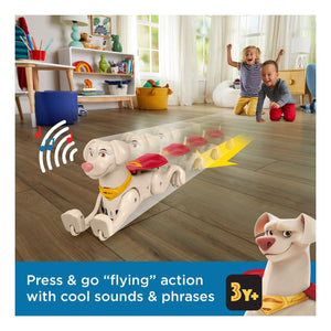 Kids can bring to life all the thrilling action of the DC League of Super-Pets film with the Rev & Rescue Krypto figure from Fisher-Price. Young crimefighters can transform Krypto the Superdog from standing “pup”-right to “flight” mode, then press his cape to “rev” up and send him racing into action. Featuring fun music and sounds, plus phrases from the film, this figure lets kids create their own action-packed rescue missions with Rev & Rescue Krypto.