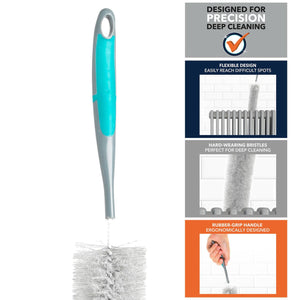 Keep your home clean and dust-free with this Beldray Radiator Brush, perfect for cleaning behind radiators or other tricky spots. Featuring a flexible design so you can easily remove dust from hard-to-reach areas, the brush has hard-wearing bristles which help provide a thorough and efficient clean. Including an ergonomic rubber-grip handle, easily reach up to 60 cm without hassle and have dust-free radiators in no time. With a lovely turquoise handle, this brush is a great addition to any home.