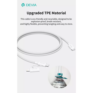 Constructed with high-quality Thermoplastic Elastomer (TPE), the Devia cable is designed for durability and longevity. This robust material ensures that the cable can withstand daily wear and tear, making it a reliable choice for all your charging needs.