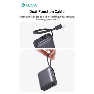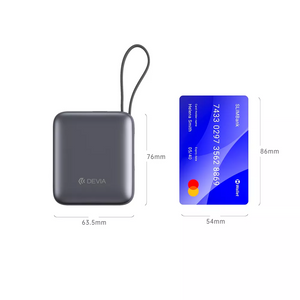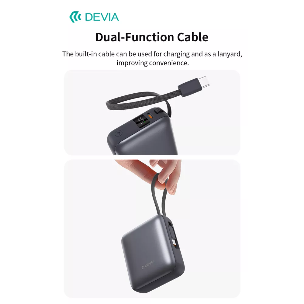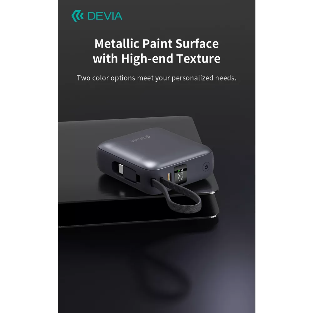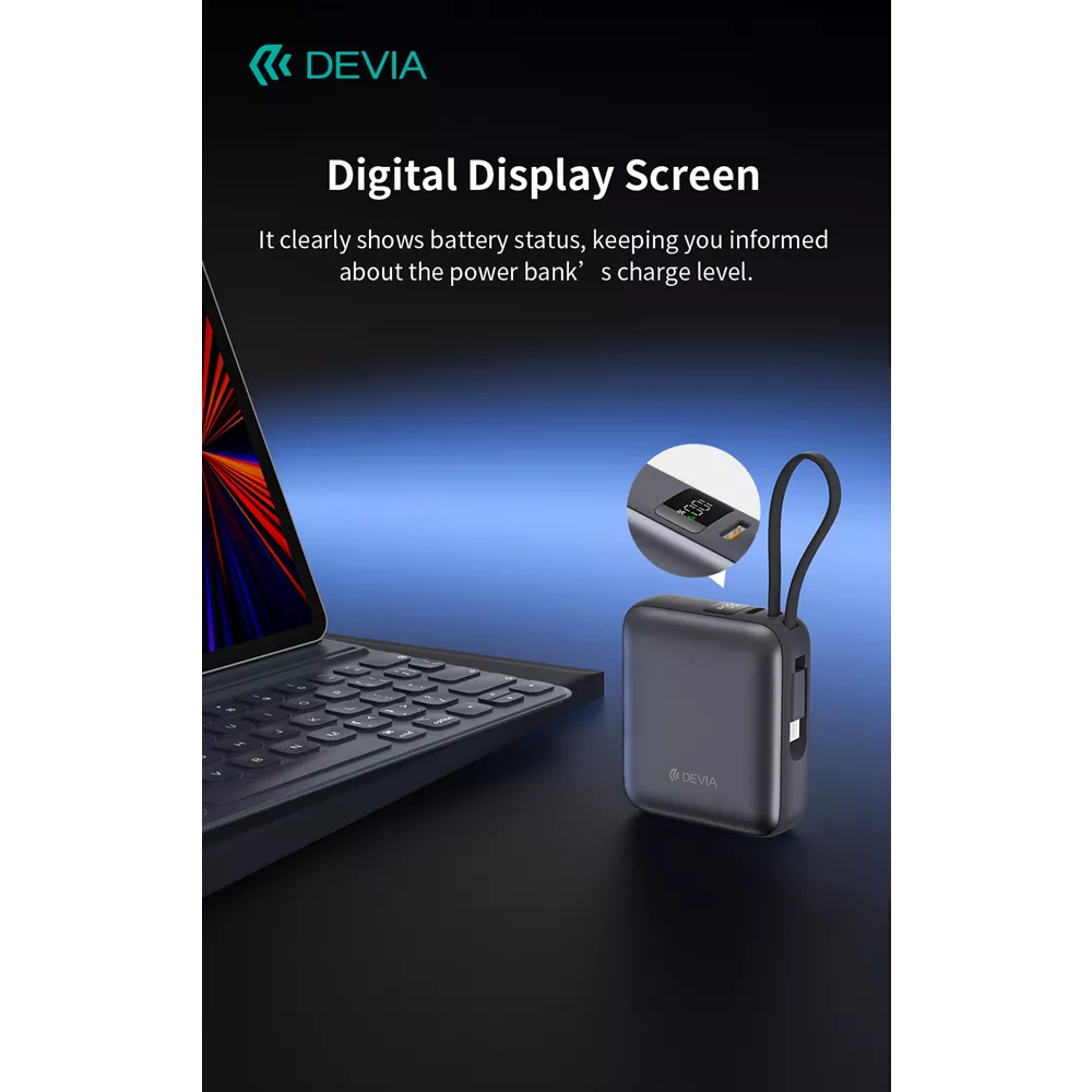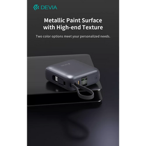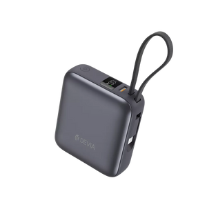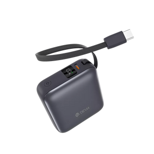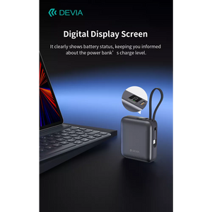 Devia 10,000mAh 35W PD Digital Display Powerbank With Built In USB-C Cable Grey