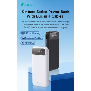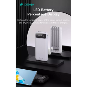 Devia - 10,000mAh Digital Display Powerbank & USB, Lightning, MicroUSB & USB-C Cable - White