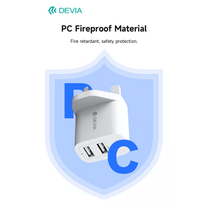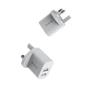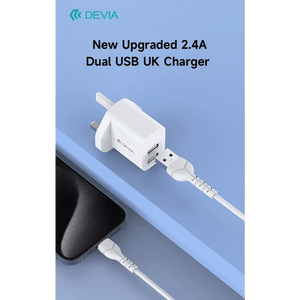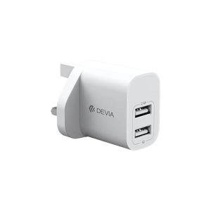 Devia 2.4A Dual USB 3-Pin UK Charging Plug White