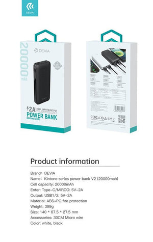 Devia 20,000mAh Kintone Dual Port LED Indicator Powerbank White