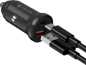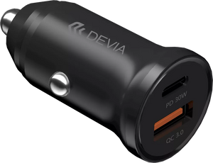 Devia 30W Mini Power Delivery USB-C & Qualcomm 3.0 USB Port Car Adapter Black