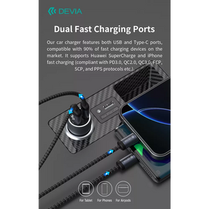The Devia 30W Power Delivery USB-C & Qualcomm 3.0 USB Port Car Adapter is a must-have accessory for anyone looking to keep their devices charged efficiently while on the go. Its powerful charging capabilities, versatile design, and high safety standards make it an essential tool for modern travel. Stay connected and powered up with Devia.
