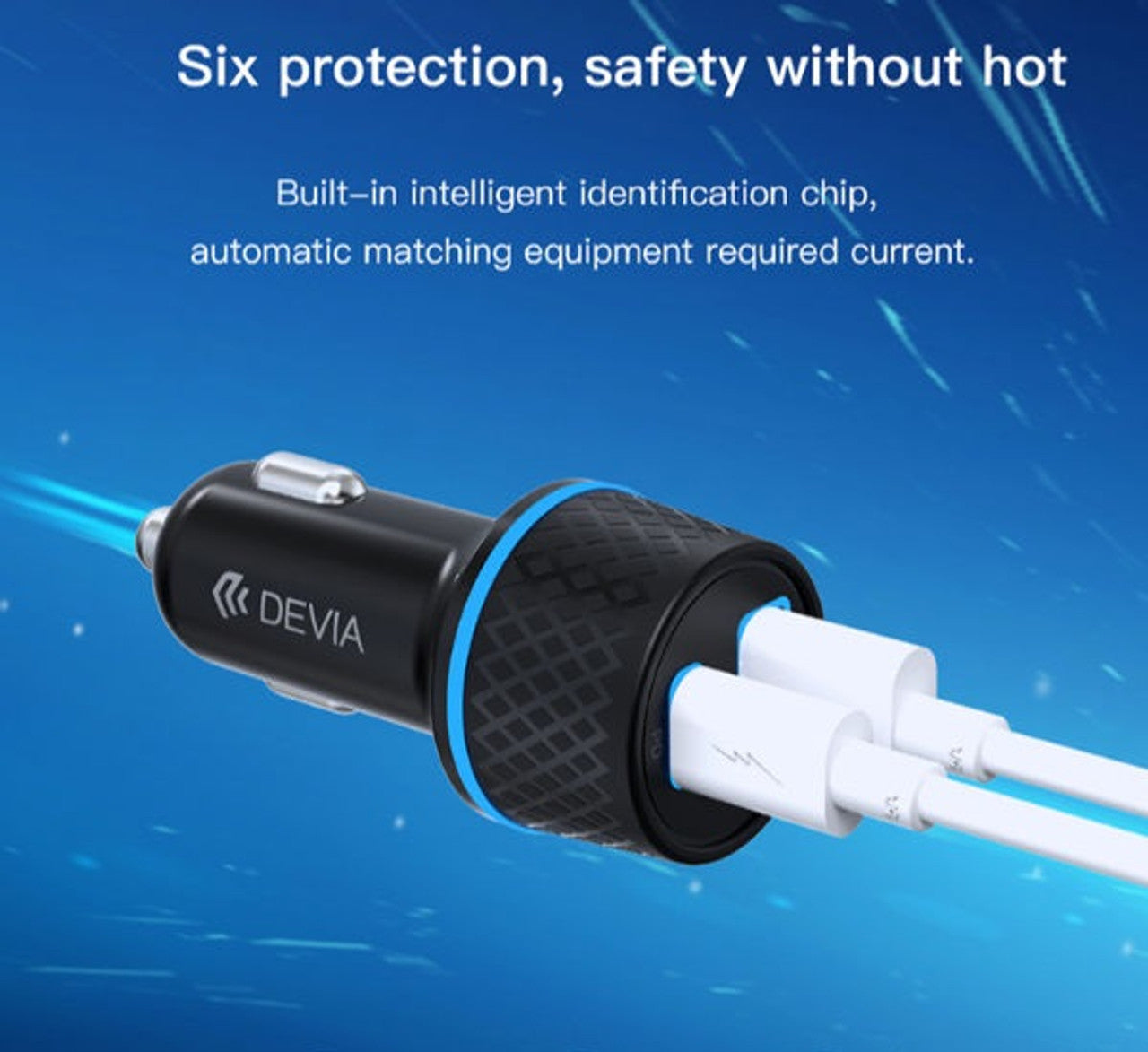 Multi-Protection for Safety: Built-in smart multi-protection chip, this Devia car adapter can effectively protect against overcharge/ overpressure/ over-heating / over-current / short-circuiting, ensuring the safety of you and your devices. Compatible with most vehicles with DC 12v-24V power supply like car, SUV, truck, Camino.