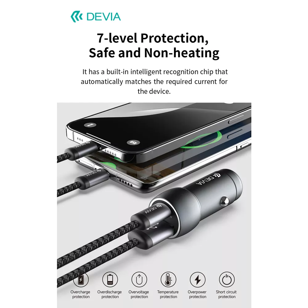 The Devia 30W Power Delivery USB-C & Qualcomm 3.0 USB Port Car Adapter is a must-have accessory for anyone looking to keep their devices charged efficiently while on the go. Its powerful charging capabilities, versatile design, and high safety standards make it an essential tool for modern travel. Stay connected and powered up with Devia.