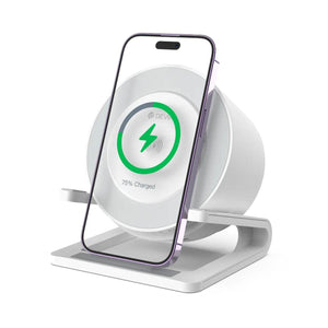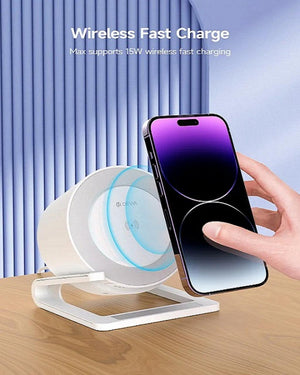 A wireless fast charger with three functions that is perfect for the bedroom or office.