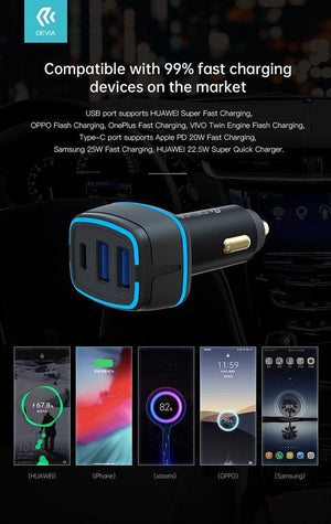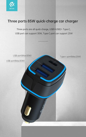 Devia 85W Power Delivery USB-C & Dual USB Port Car Adapter Black