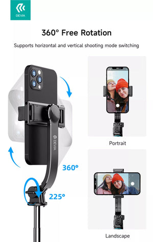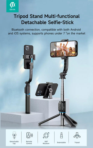 Devia - Multi Function Portable Bluetooth Selfie Stick, Tripod & Remote Control - Black
