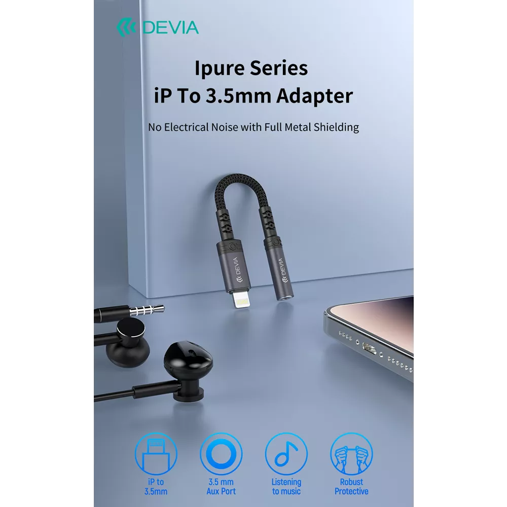 Elevate your audio experience with the Devia Non-MFI Lightning to 3.5mm Headphone Adapter in elegant black. Designed exclusively for music listening, this adapter bridges the gap between your Lightning-enabled device and traditional 3.5mm audio accessories, delivering vibrant sound quality without the distraction of call functionality.