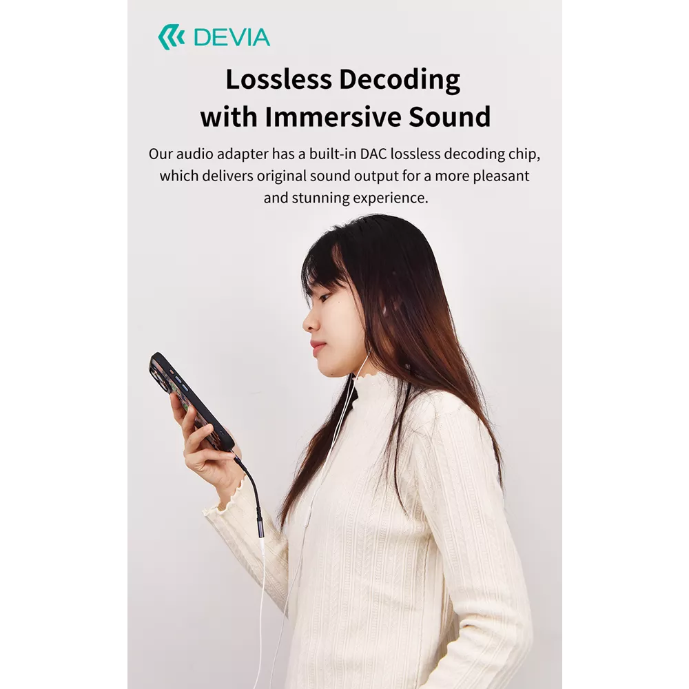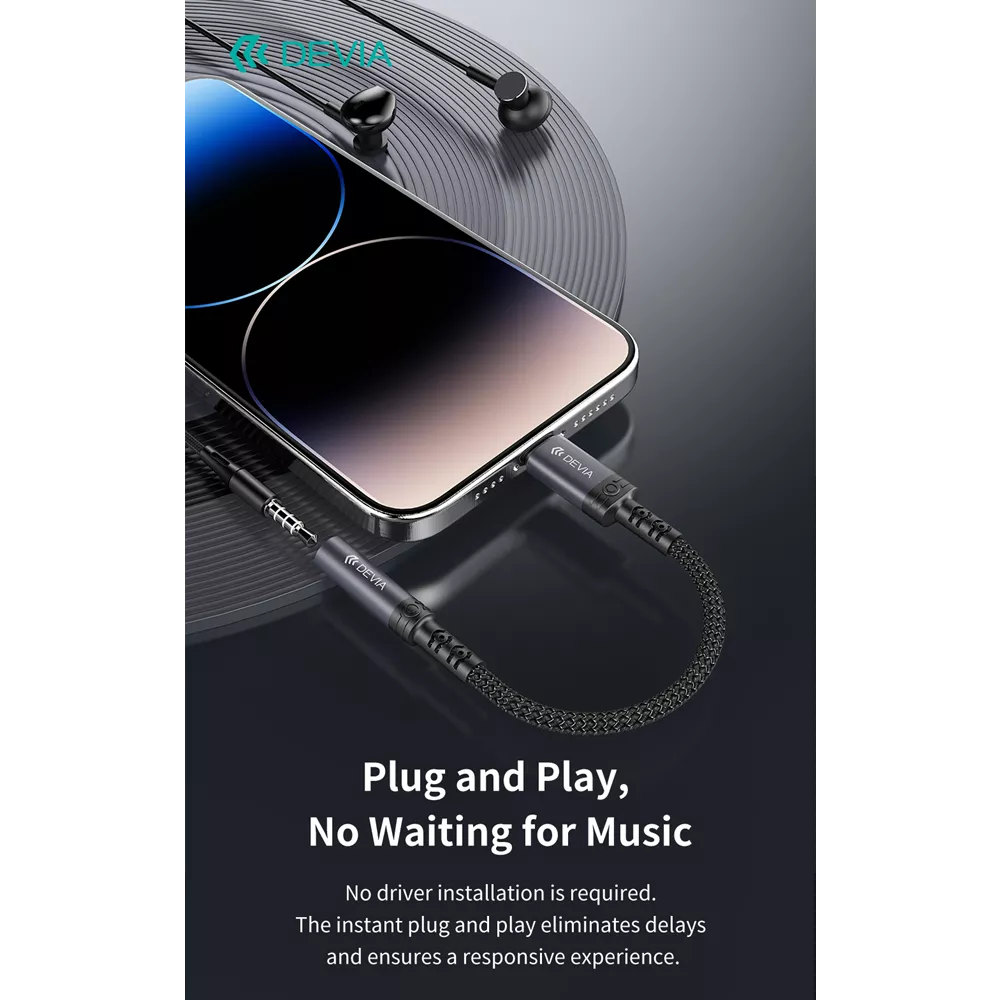 Embrace the clarity and sophistication of the Devia Non-MFI Lightning to 3.5mm Headphone Adapter, crafted to transform your everyday music experience with innovation and style.