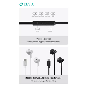 Devia USB-C Metal Earphones with Microphone & Volume Control - Black