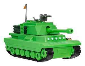 - ACTION FEATURES: 7.5-inch tank features lights, working treads, and a rotating ejecting turret.