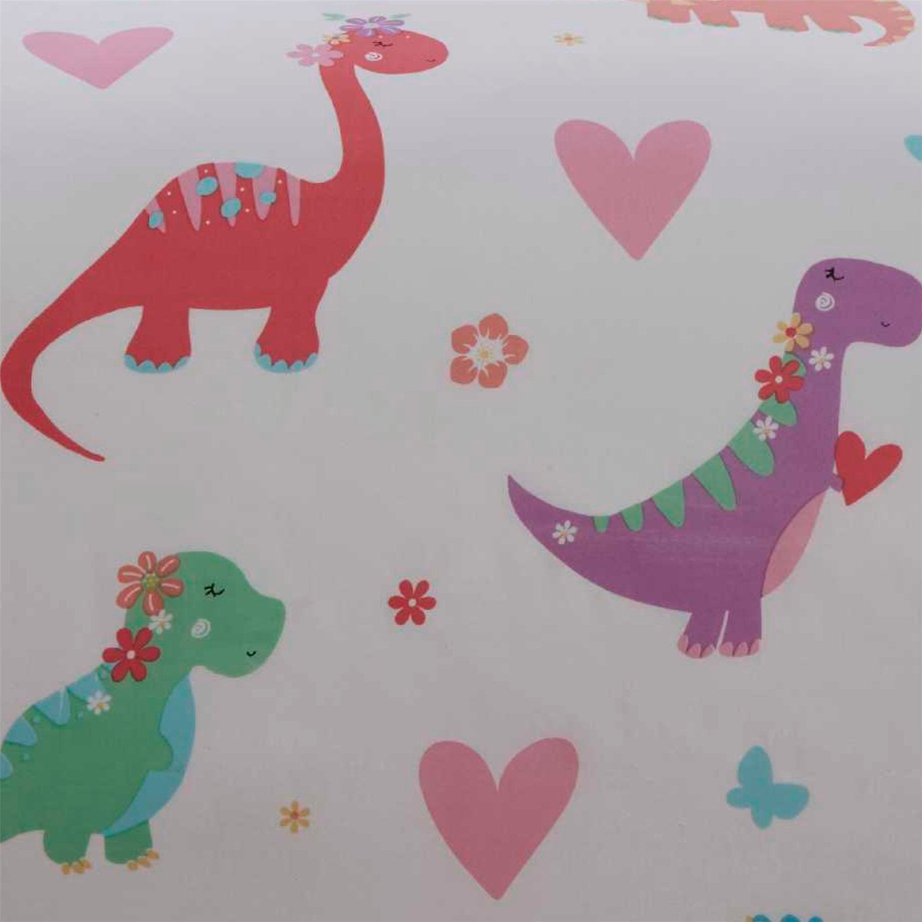 Transform your child's bedroom into a prehistoric paradise with our Dino Daisy Duvet Set featuring a playful dinosaur print in vibrant shades of pink. This bedding set includes a duvet cover and matching pillowcase, perfect for adding a touch of whimsy to any little one's room.
