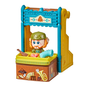 At first glance, this Frozen toy seems like it comes with a vehicle, mini doll, and 3 surprise accessories, but there's even more fun in store! This 2-in-1 playset converts from a sled into a music-themed shop, and that's not all. When kids switch the sled to a shop with Oaken inside, his expression changes too! Switch the Frozen doll's look from sweet to sassy with a turn of the dial on his base. Frozen fans will enjoy collecting all the Frozen 2-in-1 convertible playsets, as they connect in two ways. They form a row of shops in shop form. Connect them side by side and flip all the shops up together. Instant marketplace! Or…attach them in sled form and all aboard the sled train! Series 1, of these Frozen mini playsets, includes favorite characters Elsa, Anna, Kristoff, Honeymaren, Ryder, and Oaken. Collect them all for tons of Frozen fun. (Each sold separately. Subject to availability.)