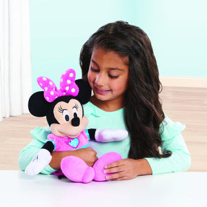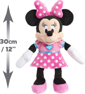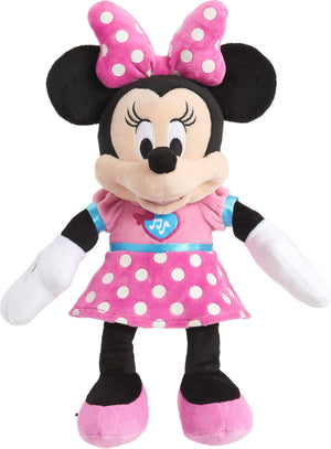 Standing 12-inches/ 30cm tall, Minnie Mouse is wearing an adorable pink outfit and her shirt graphic lights up! She is even wearing her signature bow that also lights up to the music! This cuddly fun friend is made of soft materials perfect for any Minnie Mouse fan. Little fans will love bringing the Minnie Mouse Singing Fun Plush along with them wherever they go!