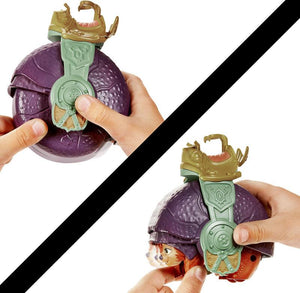 There are two ways to play with the rolling Tuk Tuk and Raya toy. Tuk Tuk can remain open and kids can roll him around with Raya on his back, or they can fold his head in and close his shell so he's all tucked up and ready to roll. The wheels underneath him make for a smooth ride on hard, flat surfaces. Inspired by the dynamic duo in the movie, the Raya doll is able to clip onto Tuk Tuk's back and go for a ride in either form!