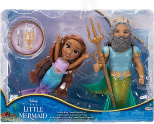 Disney The Little Mermaid Ariel Doll and King Triton Petite Gift Set, 6 Inches Tall with Dinglehopper, Candelabra and King Triton’s Trident Accessory Toys