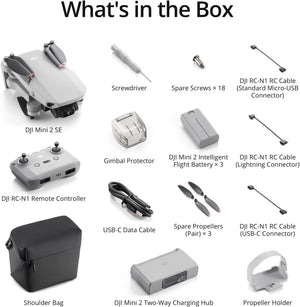 - DJI Mini 2 SE Fly More Combo - Includes everything from the standard version as well as two additional Intelligent Flight Batteries, a Shoulder Bag, and more for extended flight and more convenience;