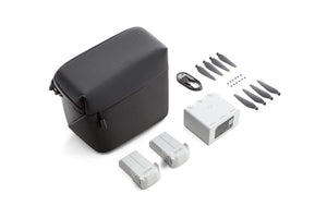 DJI Mini 3 Pro Fly More Kit includes two Intelligent Flight Batteries, a Two-Way Charging Hub, data cable, shoulder bag, spare propellers, and screws, providing comprehensive support for your aerial photography experience, at a better price than buying separately.