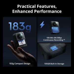 - Next-Level 8K Performance - Keep the action going with your 360 camera supporting 8K/30fps videos for up to 100 minutes [4] nonstop. For every adventure or event, your action camera never misses a beat.