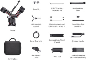 - The Combo additionally includes a Focus Motor (2022), Focus Motor Rod Mount Kit, Focus Gear Strip, Briefcase Handle, and Carrying Case for versatile functionality.