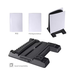 Advanced Cooling System: Features dual speed-regulating fans to enhance air circulation and dissipate heat effectively from your PS5 console.