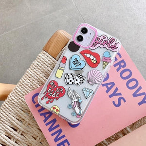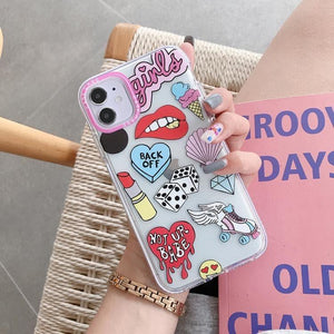 Double Color Pattern Protective Case Cover For Apple iPhone 12 / 12 Pro (Lipstick Ice Cream)