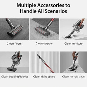With a sleek, ergonomic design, the power and myriad features it offers, the Dreame V11 Cordless Vacuum Cleaner makes that task of cleaning the home that much easier. Compared to the V10, the V11 has a much brighter, slicker appearance. It sports a beautiful, metallic grey color on the vacuum itself and the accessories and metallic red in the extension handle and on/off trigger making for a color scheme that’s pleasant to look at. The physical design is compact and economical, so one needn’t worry about it taking up too much space.