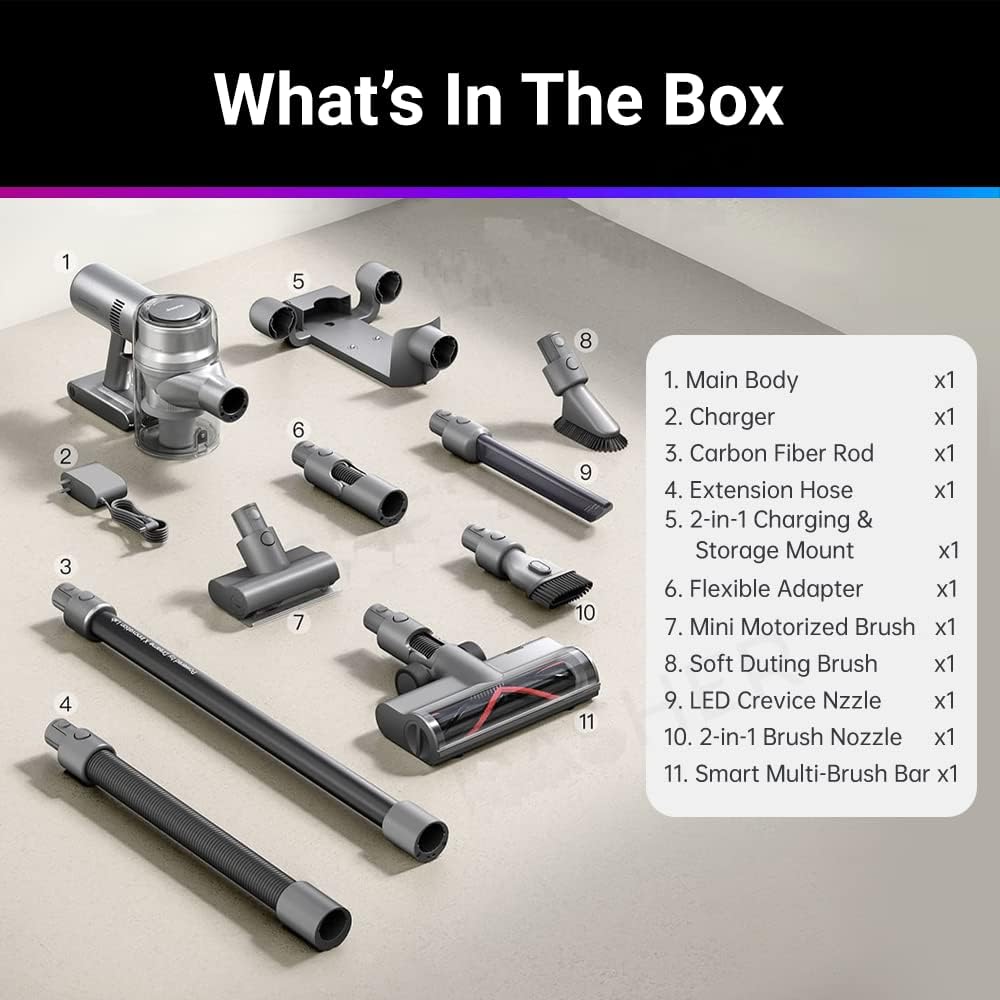 - Powerful 150,000 RPM Motor: Driven by the Dreame Space 5.0 High-Speed Motor, reaching 150,000 RPM for up to **185 AW** (27,000 Pa) of formidable suction power.