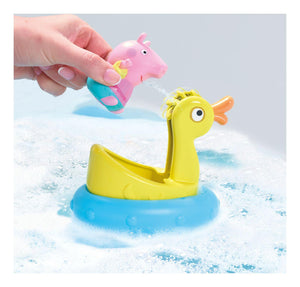 It floats: Made up of three parts, Peppa and her Duck sit nearly in the floating base. It pours: Fill the duck then sieve water through the bottom or tilt to sprinkle through the mouth. It squirts: Peppa Pig figure is a water squirter: squeeze her to power the duck's spinning wheel. Imaginative water play: Ideal for storytelling and role play, helps encourage confidence in water and develops fine motor skills. Suitable from 18 months.
