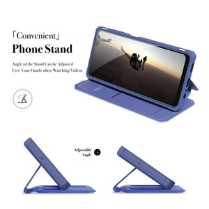 Built in stepless stand while folding into a kickstand position to watch videos hands free, embedded magnetic clasp secure lock the case, also the front cover can magnetize to the back cover when completely flipped open.
