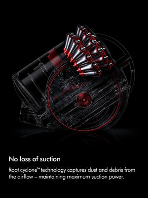Radial Root Cyclone™ Technology: Utilizes two tiers of cyclones to generate high centrifugal forces, capturing microscopic dust and allergens without loss of suction.
