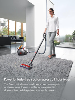 Introducing the Dyson Big Ball Multi Floor 2 Vacuum Cleaner in Iron/Yellow, engineered for powerful and versatile cleaning across all floor types. With 170 Air Watts of suction power, it effectively deep cleans carpets, wood, vinyl, and tiled floors.