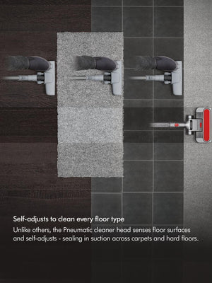 Pneumatic Musclehead Floor Tool: Automatically adjusts to different floor surfaces, sealing in suction without the need to change cleaner heads.