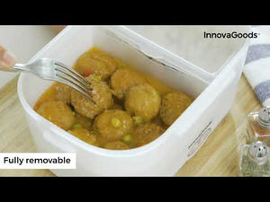An extremely practical lunch box for heating up food or keeping it warm without the need for a microwave. Ideal for taking lunch to work or when travelling, and heating it up easily in the car. It is simple to use, you simply plug the lunch box into the cigarette lighter socket using the removable adapter (included), wait for a few minutes, and enjoy warm home-cooked food. It has a capacity of 1.05L and can reach a maximum temperature of up to 70 ºC. Inside, it features a removable tray with 2 separate compartments and a smaller container with a lid which is also removable, so both can be cleaned easily in the dishwasher. The container with lid is useful for salads or desserts and the other for the foods you are going to heat up. The lunch box lid has a steam release valve and a cutlery compartment which includes a spoon. It also has 4 safety catches to close it and a folding carry handle so you can take it anywhere more conveniently. It can also be used as a conventional lunch box for cold or fresh foods.
