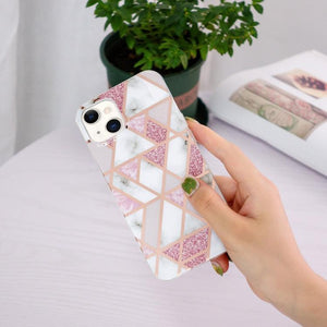 Electroplating Soft TPU Phone Case Cover Apple iPhone 15 (Pink White Rhombus)