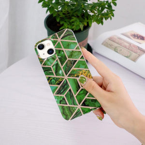 Electroplating Soft TPU Phone Case Cover Apple iPhone 15 Plus (Green Rhombus)