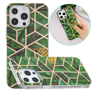 Electroplating Soft TPU Phone Case Cover Apple iPhone 15 Pro (Green Rhombus)