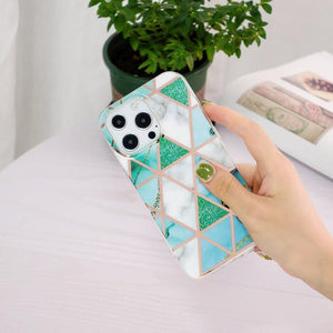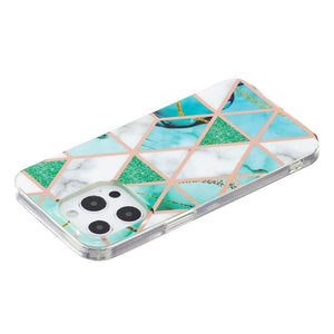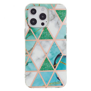 Electroplating Soft TPU Phone Case Cover Apple iPhone 15 Pro Max (Green White Rhombus)