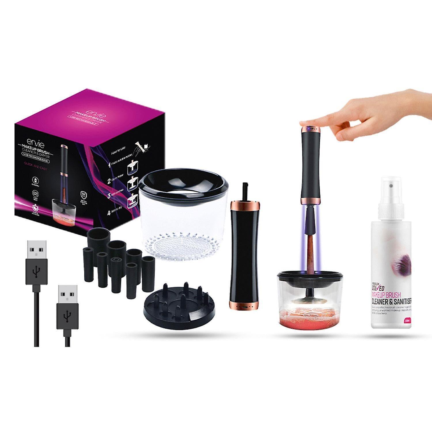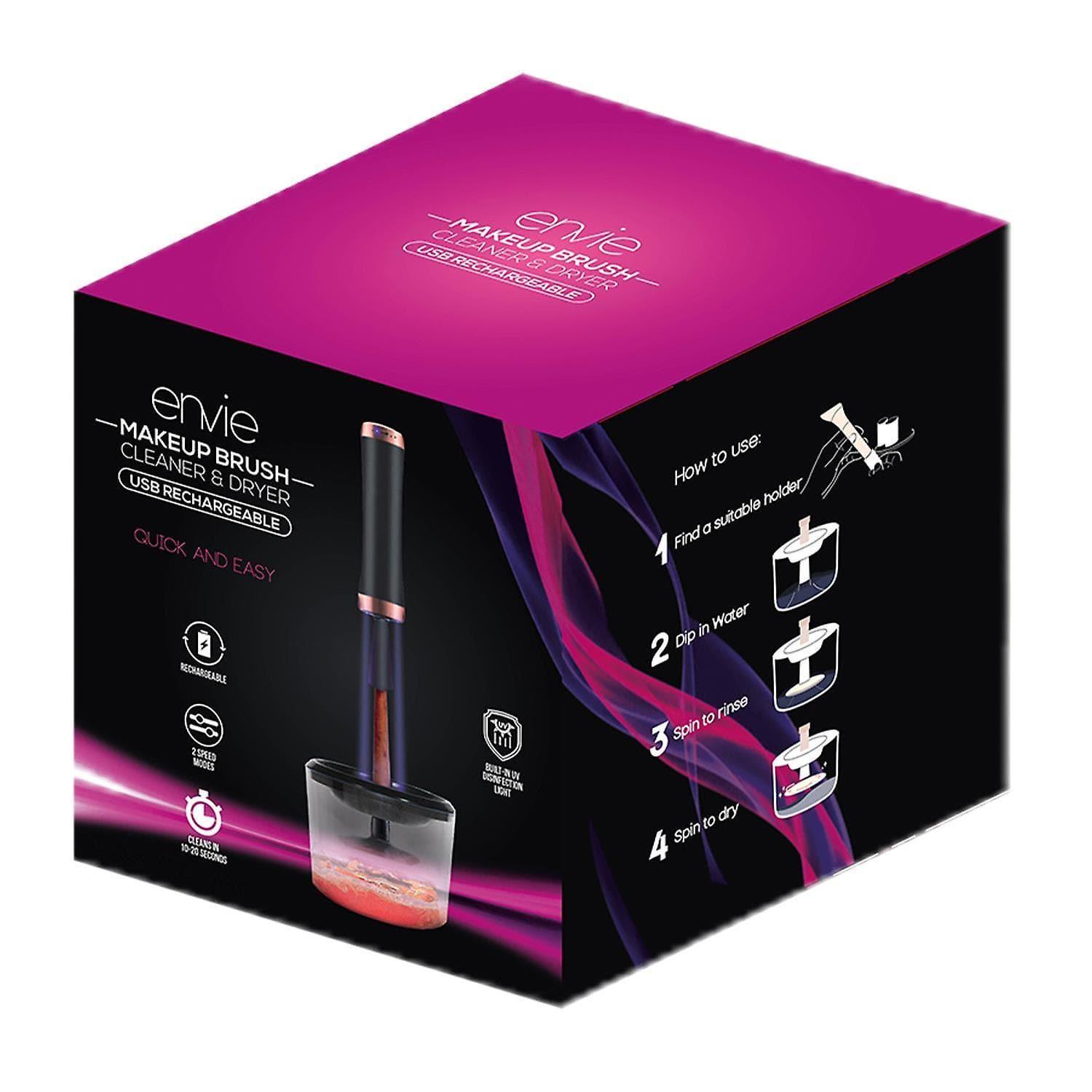 Envie makeup brush cleaner & dryer USB Rechargeable with Sanitizing Spray, BlackEnvie Make Up Brush Cleaner: It is recommended that you clean your make up brushes frequently to avoid eye infections. This makeup brush cleaner cleans brushes by removing old makeup, bacteria, oil, dirt, and dead skin.