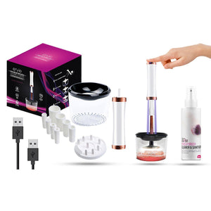 Envie makeup brush cleaner & dryer USB Rechargeable with Sanitizing Spray, BlackEnvie Make Up Brush Cleaner: It is recommended that you clean your make up brushes frequently to avoid eye infections. This makeup brush cleaner cleans brushes by removing old makeup, bacteria, oil, dirt, and dead skin.