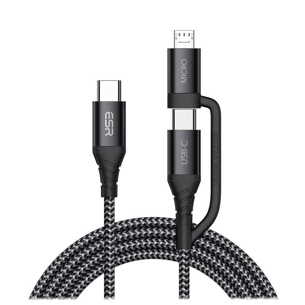 ESR 1m (20W) Power Delivery - Type C to Type C Braided Cable with MicroUSB Adapter Black