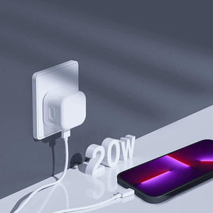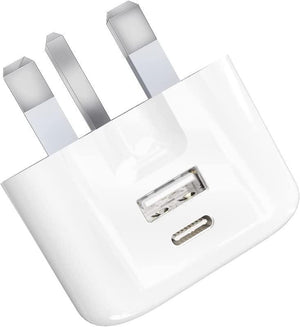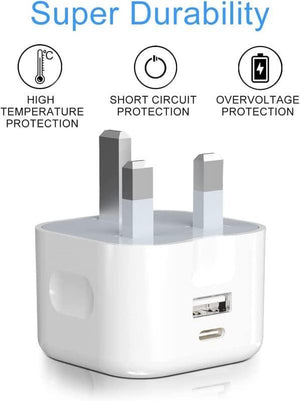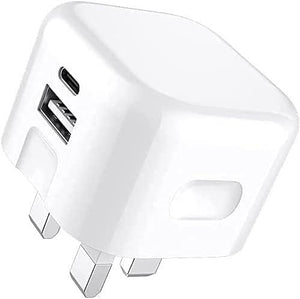 Fast Charger Plug with 20W Dual Ports USBC PD 3.0 Mains UK C Wall Charging Power Adapter