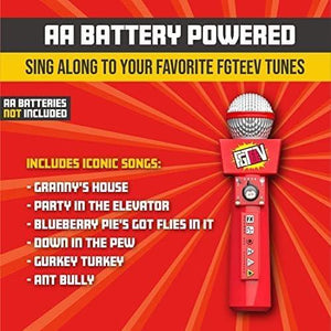 Be like FGTeeV with this voice-changin' microphone featuring hit sound effects and music from his top YouTube videos! #BeLikeFGTeeV and record your voice as yourself or use three different fun, disguised voices while mixing in sound effects and drops of hit FGTeeV music tracks. Play it all back for a one-of-a-kind FGTeeV experience!