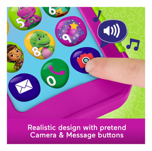 - Musical toy phone for kids featuring characters, songs and phrases from the Barney’s World series